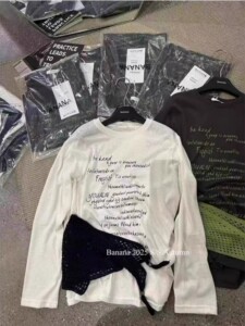 十三行早秋新款韩系小众时尚字母印花圆领长袖T恤女宽松慵懒ins潮