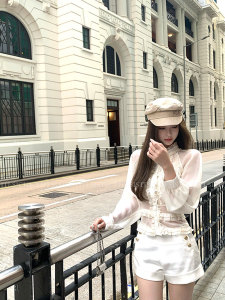 titi小姐姐【日光柔纱】长袖衬衫女秋法式宫廷风立领收腰雪纺上衣