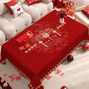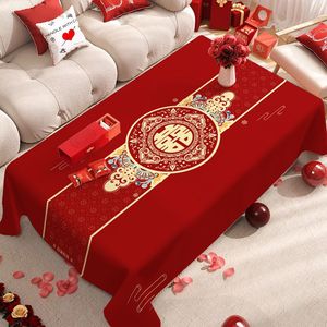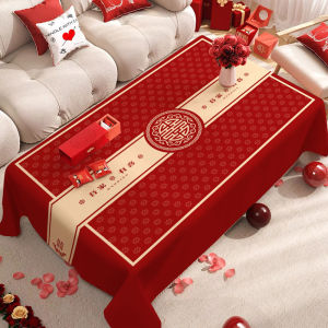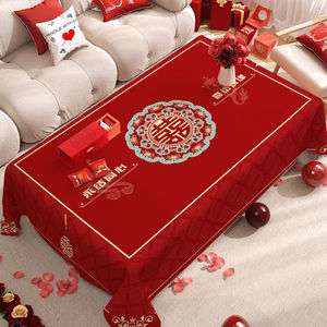 新婚装饰大红色桌布订婚客厅茶几氛围桌布新款高颜值婚庆用品批发