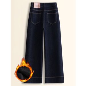 丹宁色牛仔阔腿裤女秋冬季2025新款高腰显瘦小个子加绒九分直筒裤