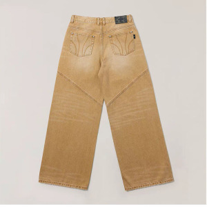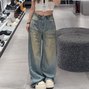 SMFK野性起源阔腿牛仔裤休闲脏脏裤做旧磨破直筒复古长裤新款女裤