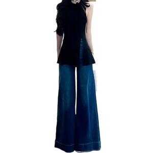 2025新款微喇叭牛仔裤女生设计感裤子梨型身材粗腿宽胯显瘦阔腿裤