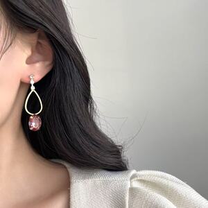 新款925耳环长款玻璃耳环高级感百搭洋气流苏精致几何小众耳饰批