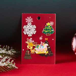 欧美跨境圣诞节新款胸针 圣诞老人圣诞树姜饼人麋鹿胸针配饰套装