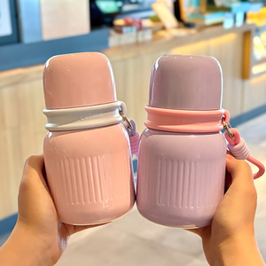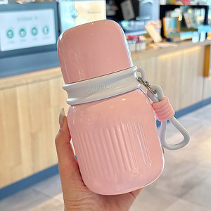 简约精致双饮保温杯坚固提环方便携带独立水杯盖硅胶吸管饮水杯