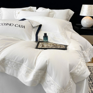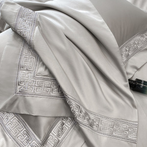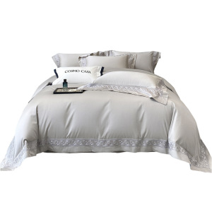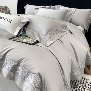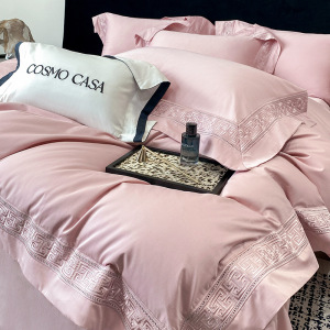 高端100支双股长绒棉四件套重工刺绣纯色被套床单笠礼品盒装-柏林