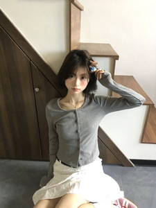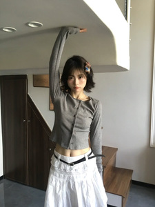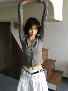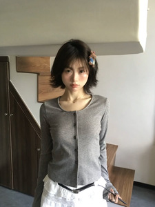 美式复古短款单排扣上衣女秋季2025新款修身正肩开衫t恤长袖上衣