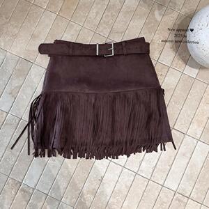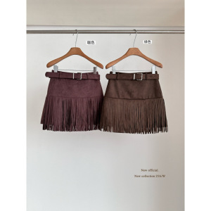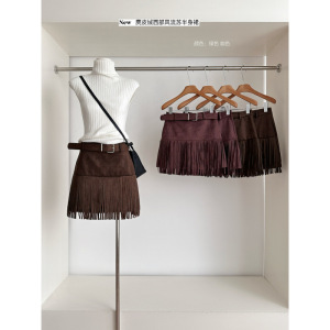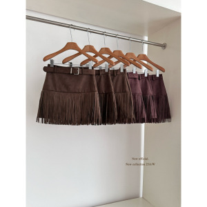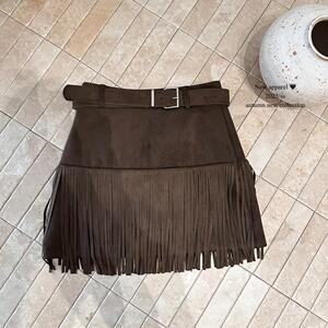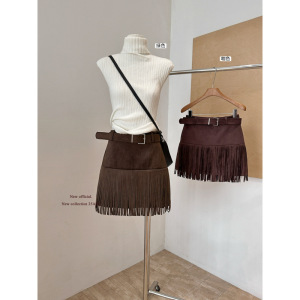 秋上新!西部风穿搭~麂皮绒流苏复古半身裙女配腰带