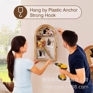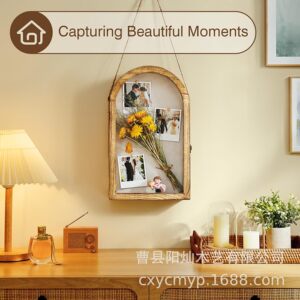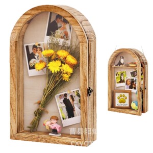 木质墙上装饰盒透明拱形挂墙式相框干花架装裱框相片实木展示盒