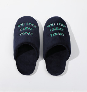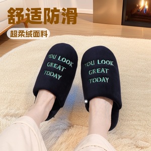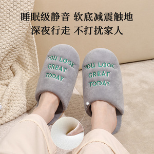 高品质居家棉拖鞋条纹针织拖鞋防滑室内无声保暖情侣秋冬毛绒款批