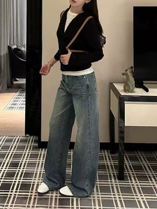 5werk 经典老钱风高级感连帽绞花针织开衫女秋新款休闲百搭外套