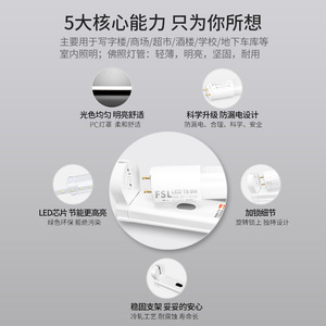 fsl佛山照明t8灯管led一体化全套家用1米2超亮PC光管圆形宿舍学习