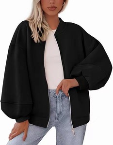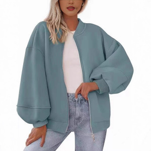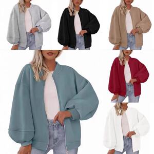亚马逊欧美跨境2025秋冬季女式休闲保暖外套棒球领长袖纯色拉链款