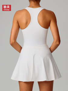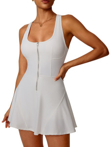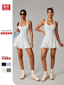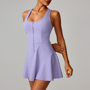 欧美跨境裸感防走光打底运动连衣裙女夏季户外跑步健身网球裙8832