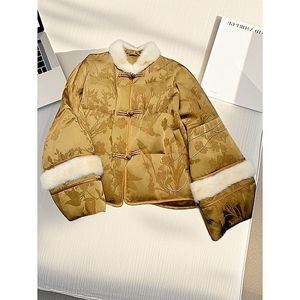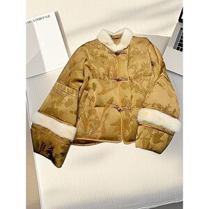 2025冬季新款新中式国风盘扣加厚棉袄女冬季黄色宽松短款棉服外套