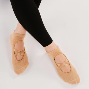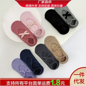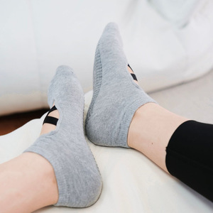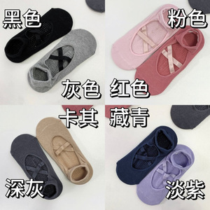 女士两双一组瑜伽运动普拉提袜子透气吸汗棉质防滑居家地板袜子