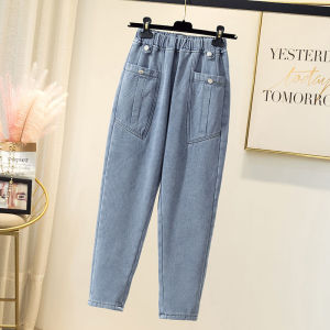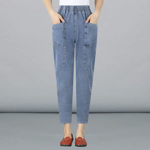 春春秋妈妈时尚高腰牛仔裤女宽松显瘦九分中年人萝卜裤休闲哈伦裤