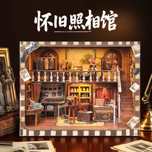 木质书立diy小屋怀旧照相馆拼装玩具创意节日礼物3D微缩场景模型