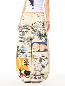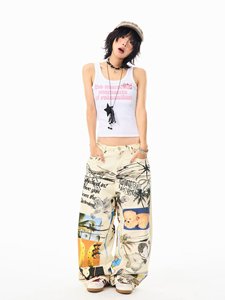 港风潮男夏季新款2025个性字母牛仔裤嘻哈ins潮高街潮流痞帅长裤