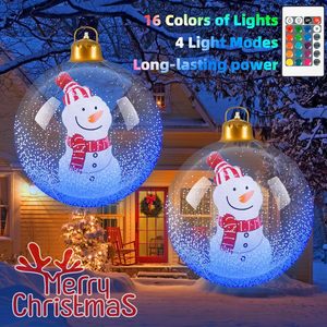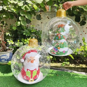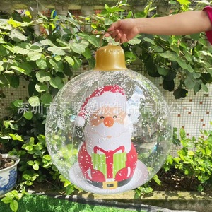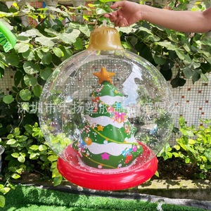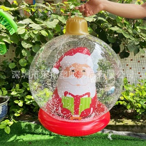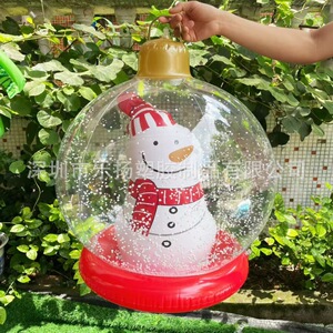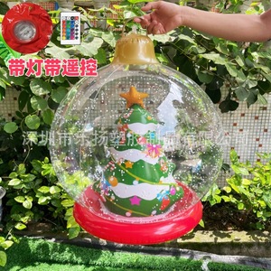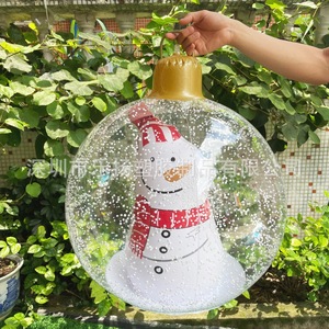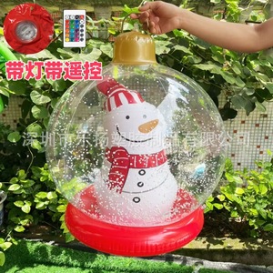 跨境新款充气圣诞球带灯户外庭院布置PVC透明球中雪人圣诞装饰球