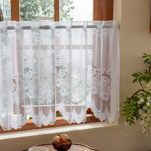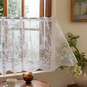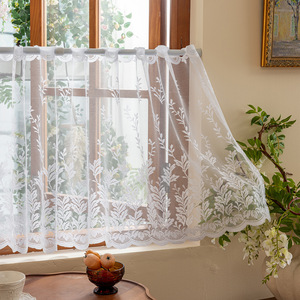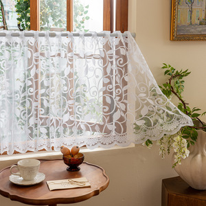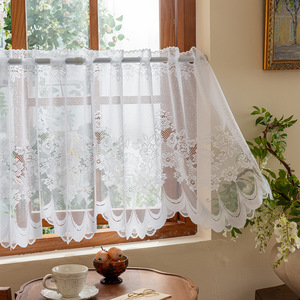美式咖啡帘门帘遮挡厨房短帘纱帘隔断帘橱柜遮丑蕾丝田园花朵树叶