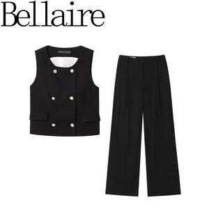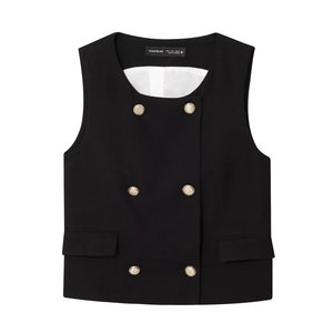 ZA外贸批发 欧美风双襟镀金层纽扣背心8582851宽松裤8606851