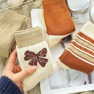 秋季款日系ins潮保暖中筒袜冬季外穿加厚甜美毛圈袜蝴蝶结袜子女