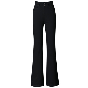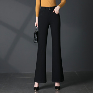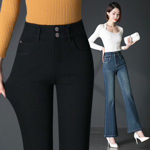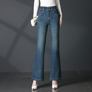 2025喇叭牛仔裤中年妈妈微喇弹力中老年女裤高腰收腹双排扣秋新款