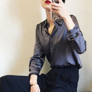 重磅缎面仿真丝衬衫女秋季新款外穿年高级感衬衣高端洋气上衣女