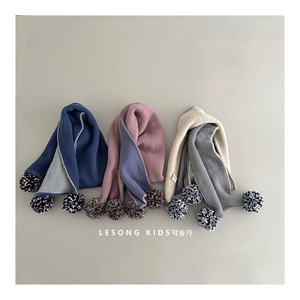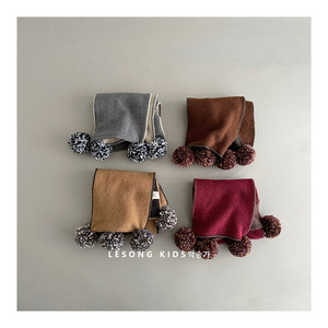 2025ins韩国儿童毛线围巾针织冬季可爱毛球男女宝宝围脖超好搭