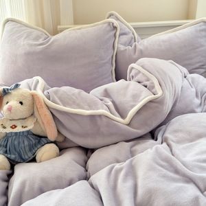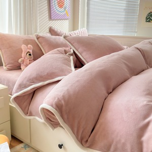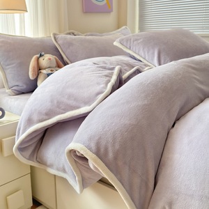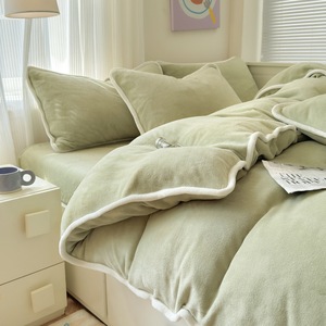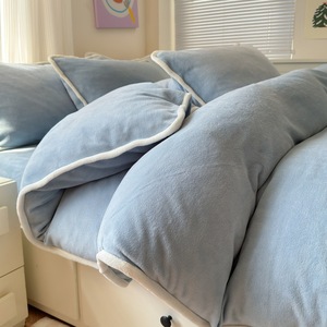 秋冬季简约牛奶绒小包边床上四件套纯色珊瑚绒床品双面绒加绒被套