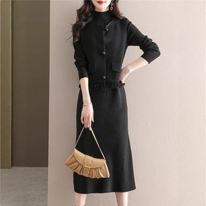 2025秋冬洋气显瘦设计感连衣裙时尚轻熟女风洋气两件套针织毛衣裙