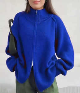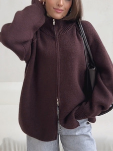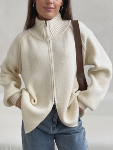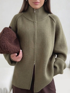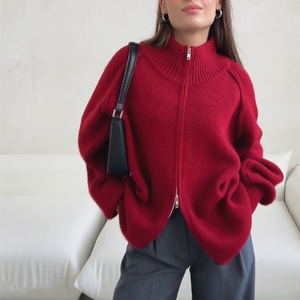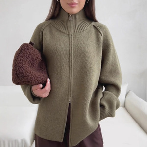 跨境保暖立领针织开衫女2025秋冬拉链设计纯色基础款欧美慵懒风