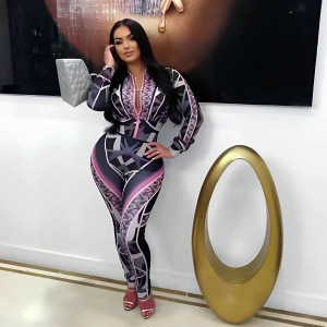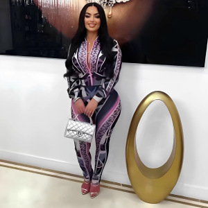 DM2530欧美跨境亚马逊新款女装 运动休闲时尚数码印花套装 两件套