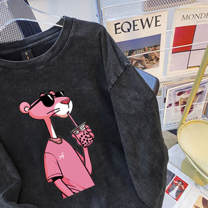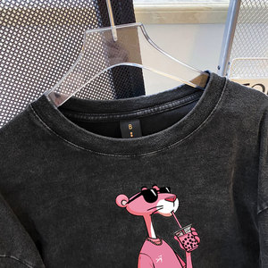 230g水洗做旧T恤复古潮牌欧美蜡染纯棉t男女落肩宽松长袖