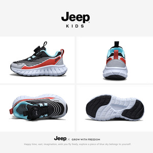 jeep男童运动鞋软底轻便透气女童鞋子2025新款大童旋钮跑步儿童鞋