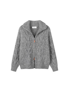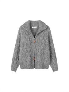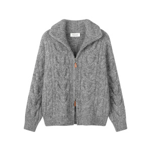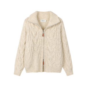 高领麻花拉链开衫毛衣女款2025新款春秋季加厚慵懒风立领针织外套