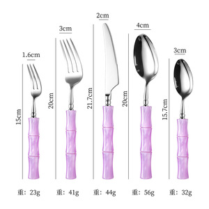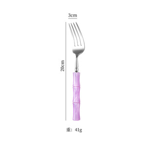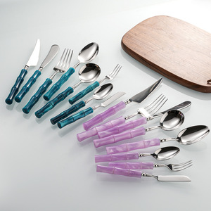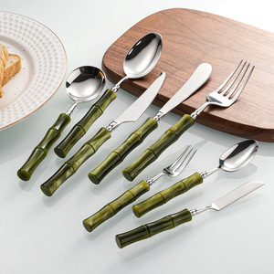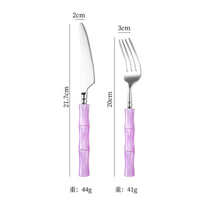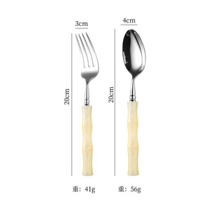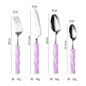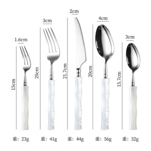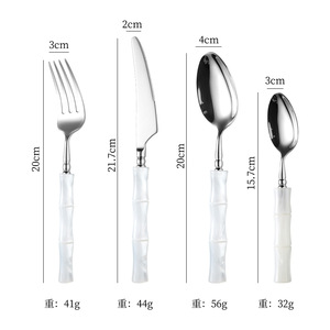 亚克力珠光白竹节手柄304不锈钢牛排刀叉勺套装高颜值西餐具批发
