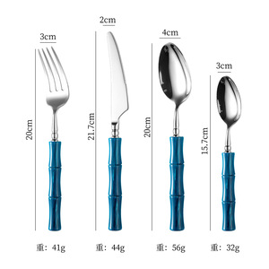 蓝色【304不锈钢】尖餐刀+餐叉+餐勺+茶勺