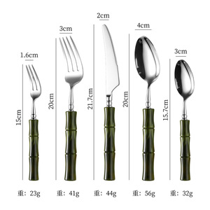 绿色【304不锈钢】尖餐刀+餐叉+餐勺+茶勺+茶叉