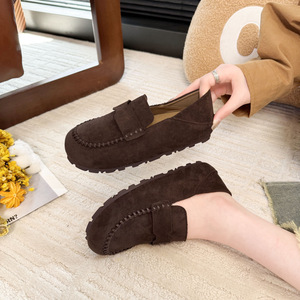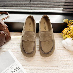潮牌森系文艺复古平底单鞋女2025秋新款博肯鞋磨砂晚晚圆头丑萌鞋