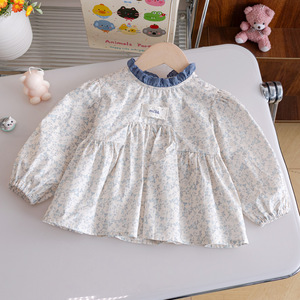 女童韩版衬衫25秋季新款碎花春秋潮流上衣女宝宝百搭休闲气质衬衫
