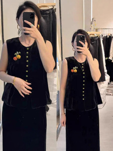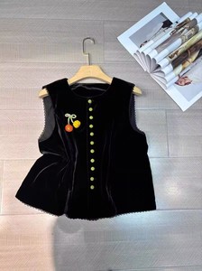 欧洲站2025秋季新款高级感气质新中式丝绒马甲女国风宽松百搭上衣