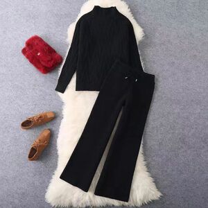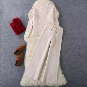 2025年新款女人味套装小香风名媛针织毛线阔腿裤子两件套时尚洋气