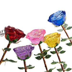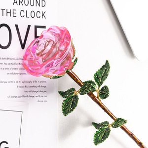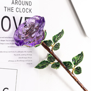 水晶玫瑰花工艺品送女朋友生日七夕礼物客厅酒柜摆件礼品紫水晶