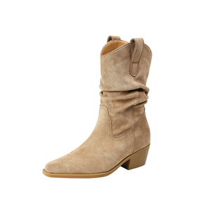 内增高马丁靴女2025秋冬季绒面复古V口高跟小个子尖头堆堆小短靴