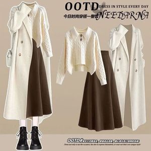 秋冬2025新款拉德套装韩系大衣+针织衫毛衣+显瘦半身裙三件套装女