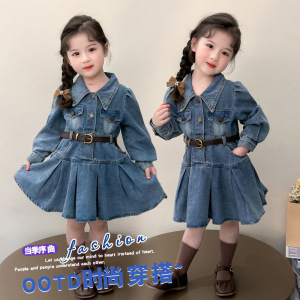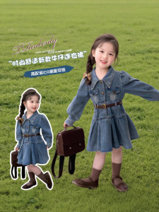女童春秋牛仔裙2025春秋季新款网红款连衣裙儿童韩版牛仔公主裙