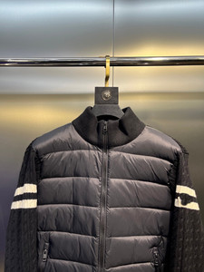 正确版 NFC芯片 M家双袖条纹织带羊毛拼接针织轻薄羽绒服男女外套