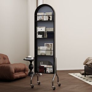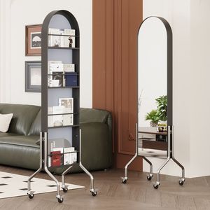 可移动镜子全身镜家用中古风收纳杂志架落地置物架全身镜可移动
